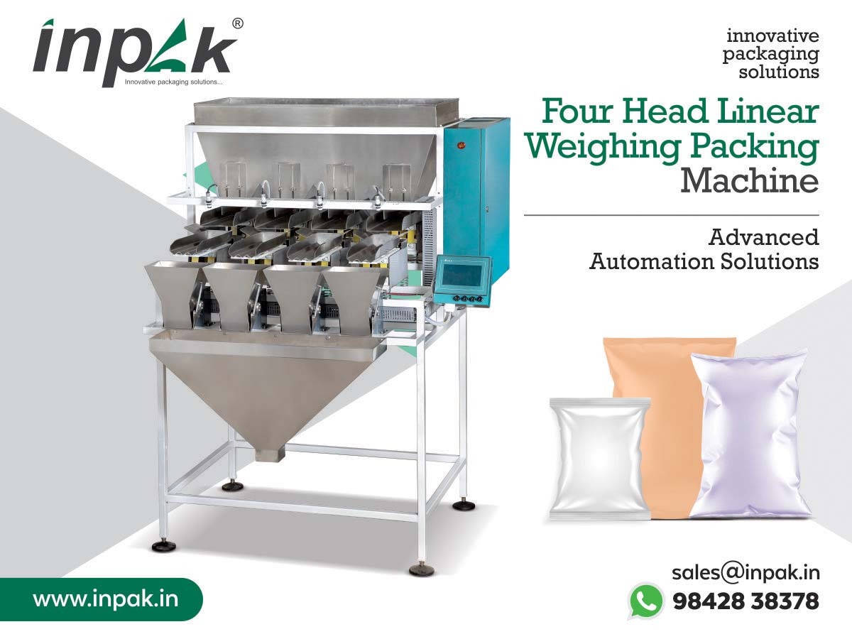The INPAK Four Head Linear Weighing Packing Machine is designed for precision, speed, and reliability in packaging granular and small piece products. With advanced weighing technology and robust construction, it ensures consistent accuracy and efficiency for industries demanding high throughput and quality.