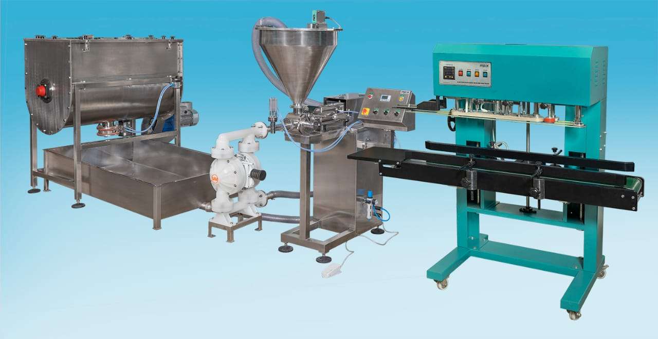The heavy-duty, Single/Double head piston liquid filler for all types of liquids, creams. pastes, gels, etc. containing particulate matter up to 7/8 in diameter. Volumes dispensed can range from 200 to 100ml per cycle, depending on the model selected. During a filing cycle, the product piston travels back to draw product from the hopper into a precision machined cylinder, then extends forward to fill. Product is dispensed into the bag or container through a filling nozzle and/pr cutoff device.